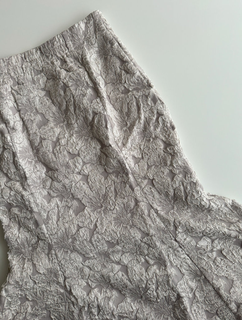 それに合わせようとグレーの花柄マーメイドスカート。